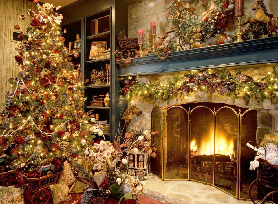 1960s: Không gian Giáng Sinh cổ điển, tông nâu đỏ – vàng nến, gợi nhớ những ngày lễ ấm cúng bên ánh lửa.